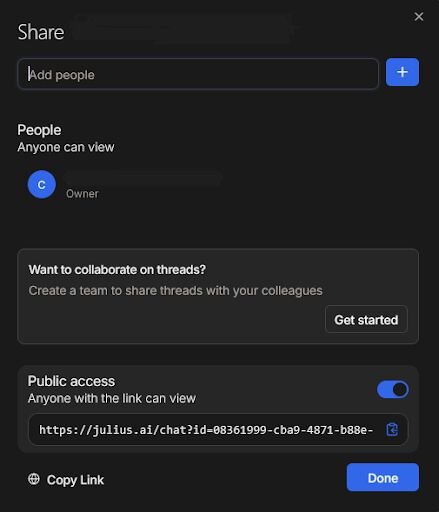 Once you have your results, you can download them as a CSV or PDF, or share them directly from Julius via a link.